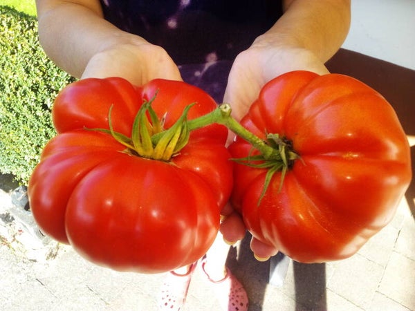„Nona Antonina“ ist eine alte, sehr beliebte italienische Fleischtomate. Ihre riesengroßen Früchte sind mittelfrühreifend und werden bis zu ca. 600-1000 Gramm. Die Pflanze ist sehr kräftig und wird ca. 180-200 cm. hoch, bis zum ersten Frost bleibt die Pflanze gesund und trägt noch ihre saftige Früchte mit exzellentem Geschmack und ausgewogenem Verhältnis von Süße und Säuere. Das Fruchtfleisch ist zartschmelzend und aromatisch. Vielseitig verwendbar: für Frischverzehr, Salat, Tomatenbrot, auch zum Kochen, Bruschetta, Chutney, Salza, Tomatensuppe, Saft, Soße usw.