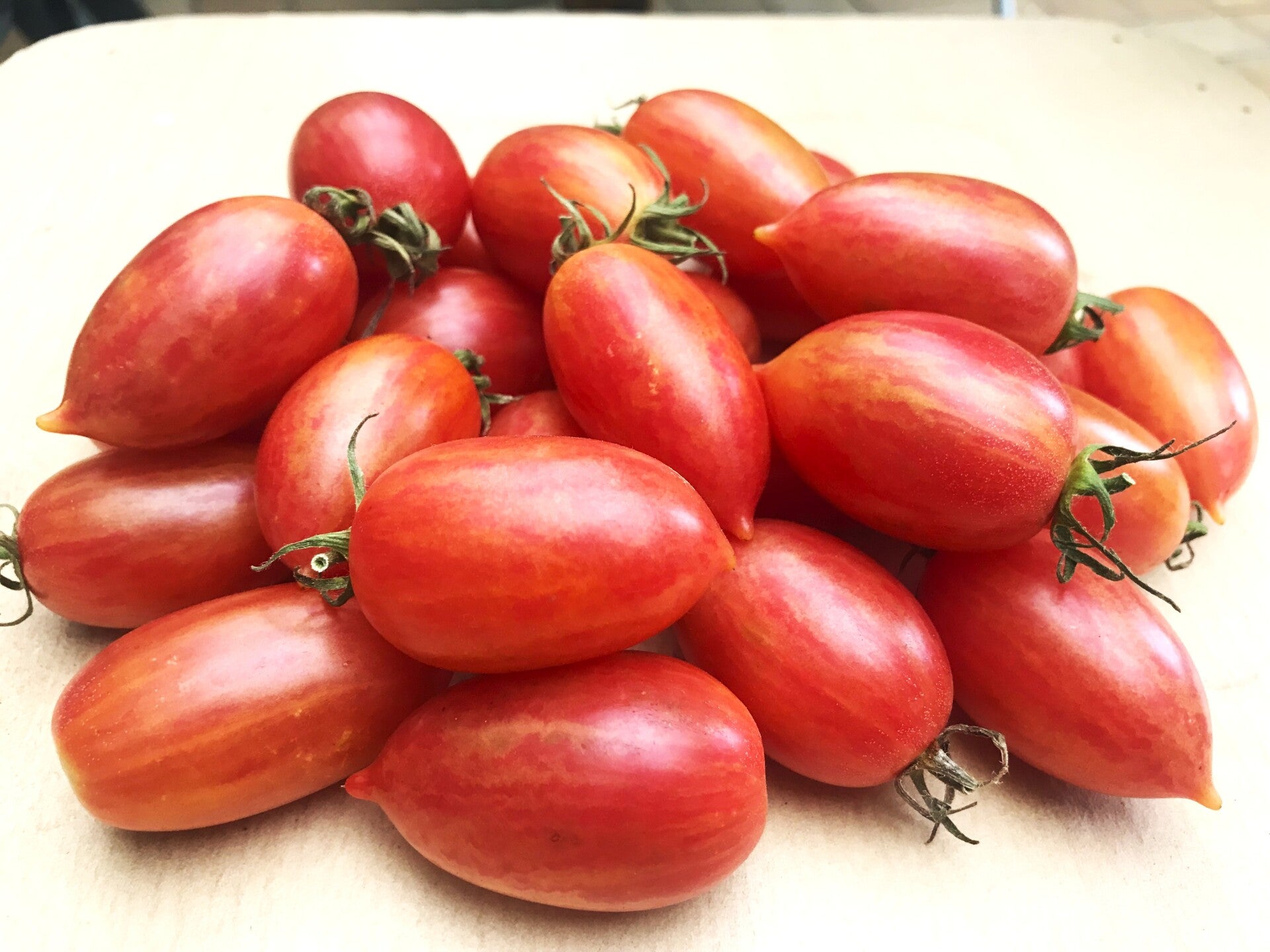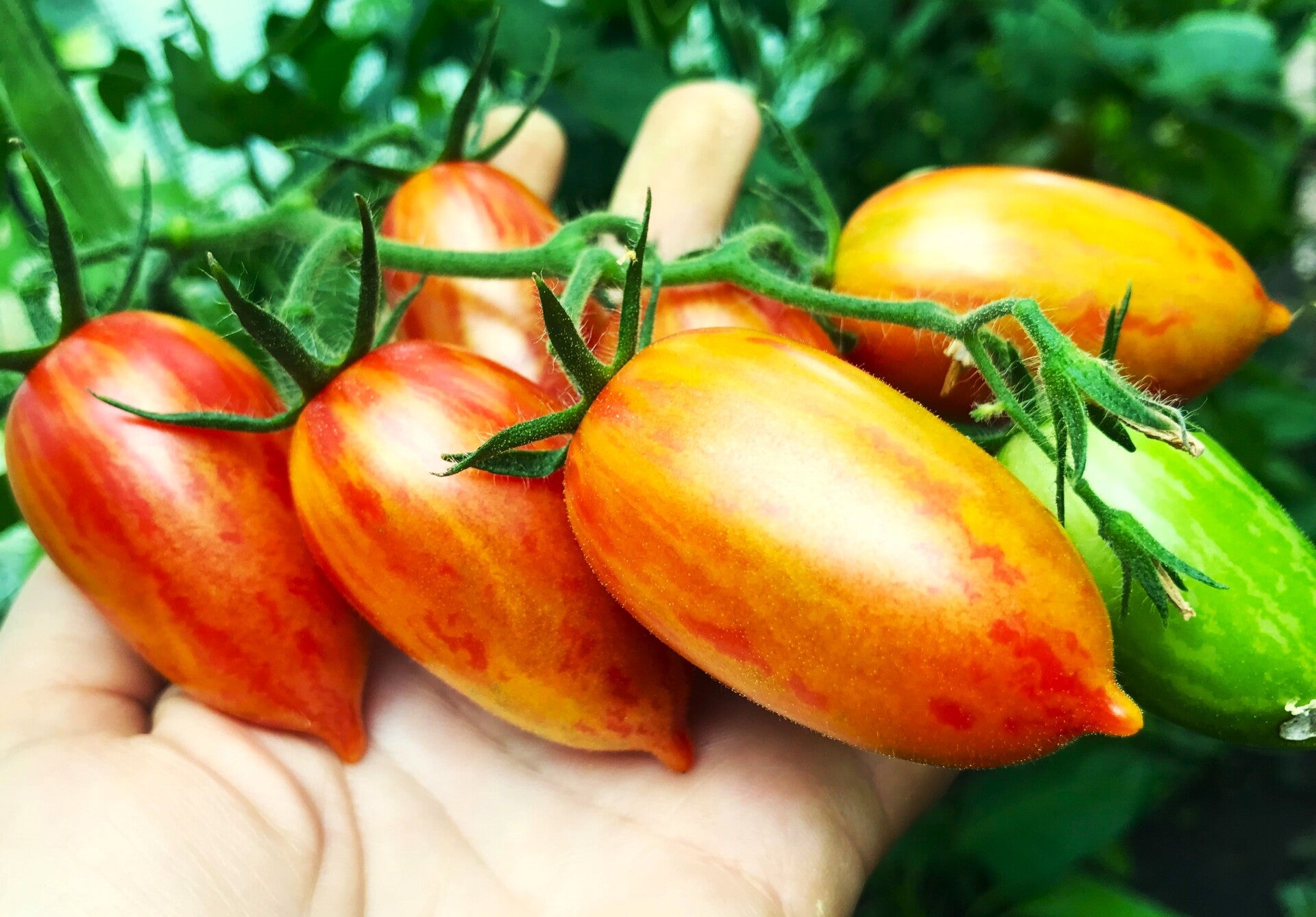 “Candy Sweet Icicle” süße Eiszapfen ist eine besondere, sehr hübsche und köstliche Miniflaschentomate aus Amerika. Die Früchte sind länglich oval mit Spitze, mehrfarbig, orangerot goldgelb gestreift, ca. 30-50 Gramm schwer und haben ausgezeichneten süßen Geschmack. Die Pflanze ist robust, sie wird ca. 180 cm. hoch, wächst schlank und verträgt mehrere Triebe. Diese Sorte ist frühreifend, ertragreich und langtragend, bis in den Spätherbst bringt sie noch Ertrag. Perfekt zum Naschen direkt vom Stock. Ein absoluter Hingucker im Garten und auf dem Tisch, sehr dekorativ.
